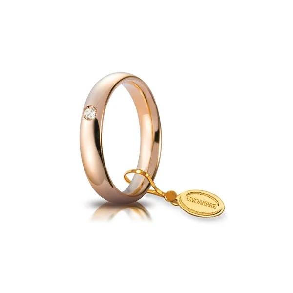 Unoaerre è tra le più antiche e prestigiose aziende orafe italiane, fondata ad Arezzo nel 1926. Conosciuta in tutto il mondo come la “fabbrica delle fedi”, ha saputo trasformare l’anello nuziale in un simbolo intramontabile di amore e tradizione. Ogni fede nasce dall’unione di maestria artigianale, innovazione tecnologica e selezione accurata dei metalli preziosi. Oro giallo, bianco o rosa vengono lavorati con cura per garantire qualità, resistenza ed eleganza. Le collezioni Unoaerre uniscono linee classiche e moderne, offrendo modelli capaci di rappresentare la personalità di ogni coppia. Indossare una fede Unoaerre significa scegliere un gioiello autentico, eterno e profondamente italiano.